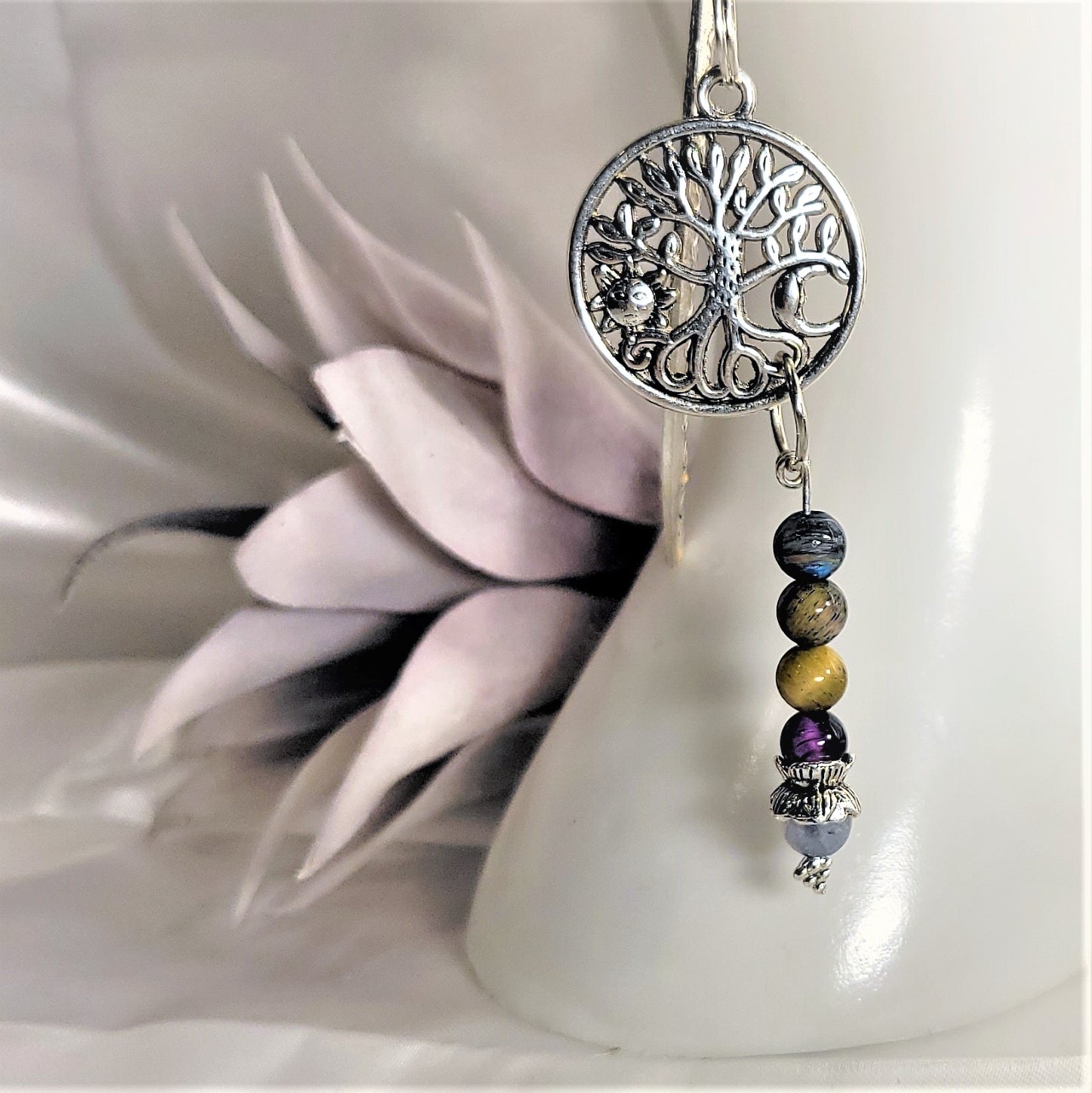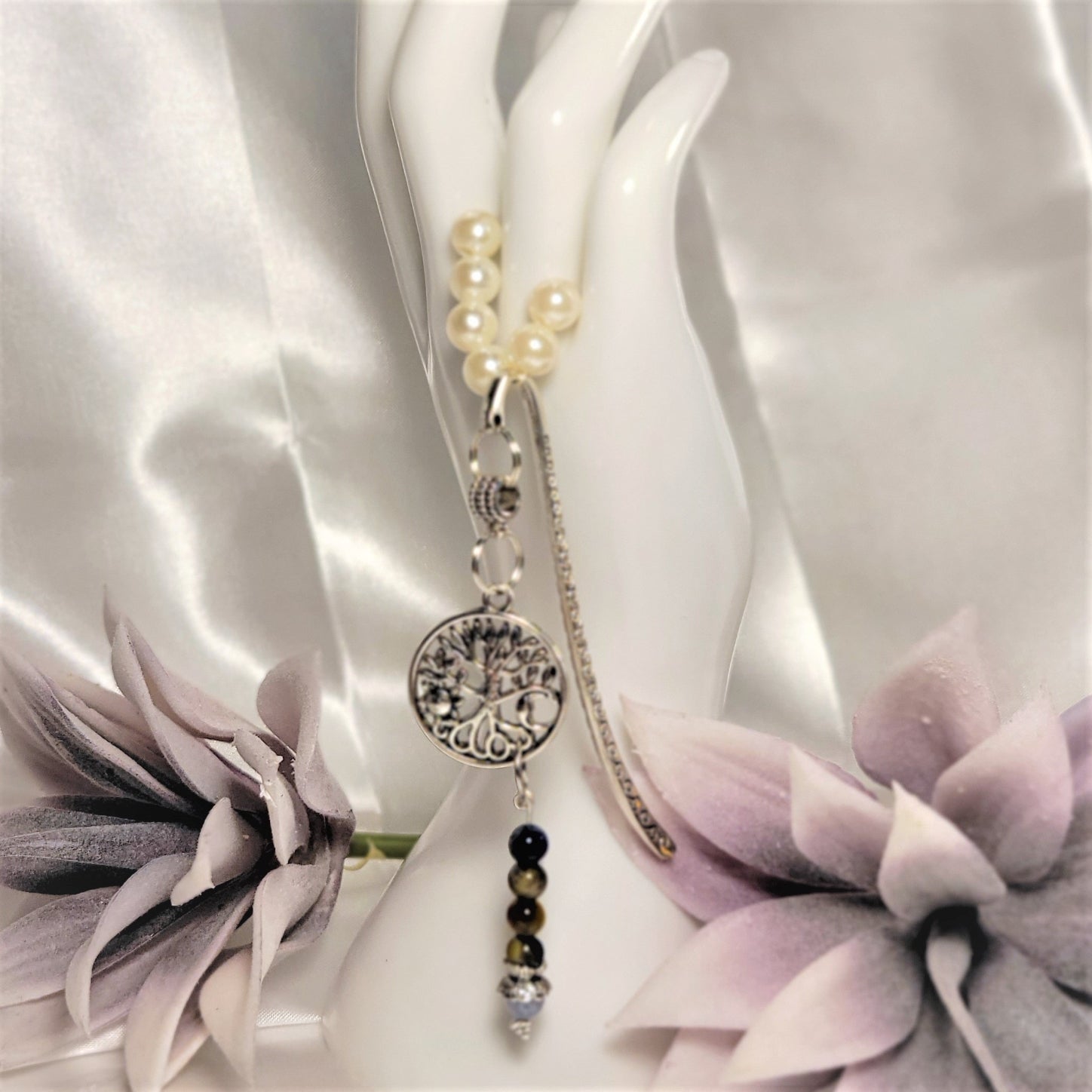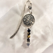 The Jade Rainbow stones are beautiful. Jades of blue, purple, violets, indigo and cobalt blue Sea Sediment Ocean Jade has particularly vibrant colors. We use these stones on a regular basis in our work. We love the multicolored Tigers Eye. These stone benefit all walks of life physically and mentally. Whether you carry your book with the bookmark inside marking your page, or handle or hold it while you read and reflect. These bookmarks have a handle made of steel and will last a lifetime.